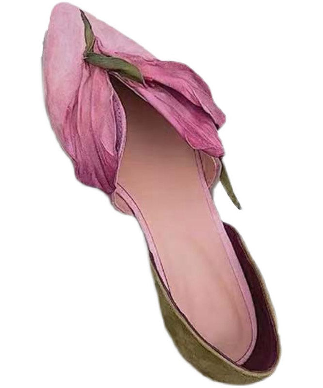 Handmade Pink Satins Flower Pointed Toe Flat Shoes