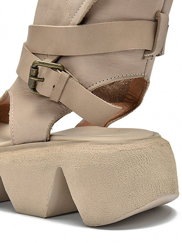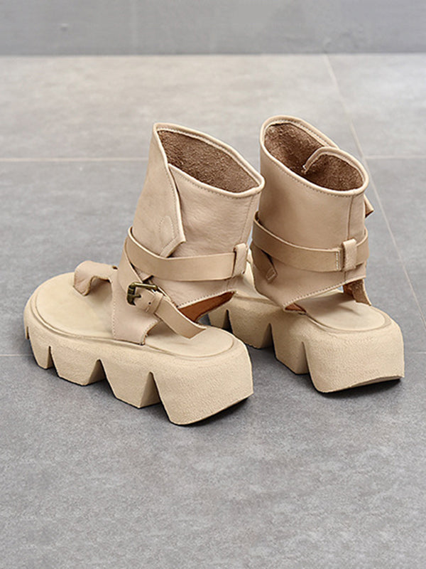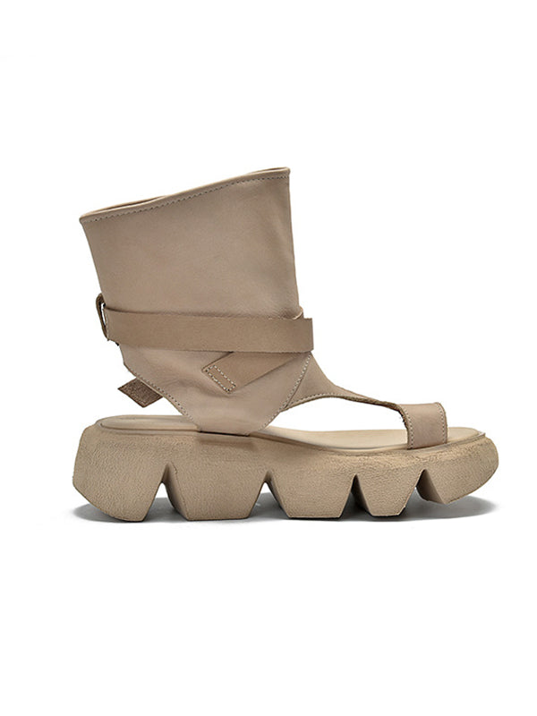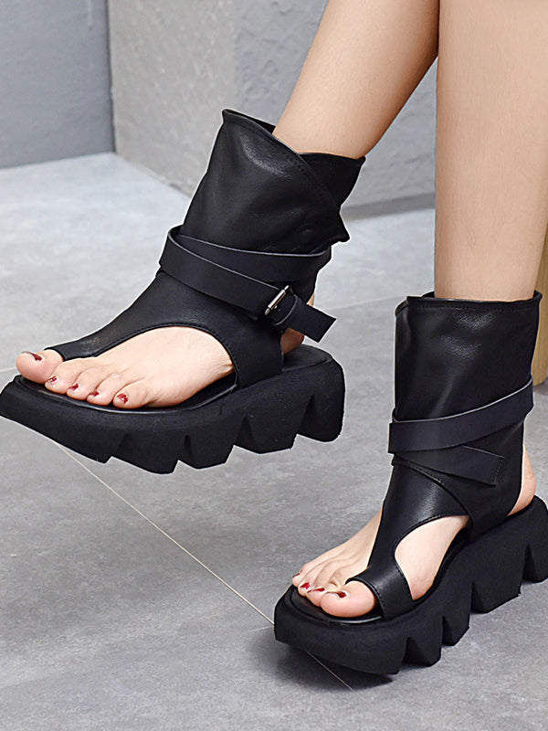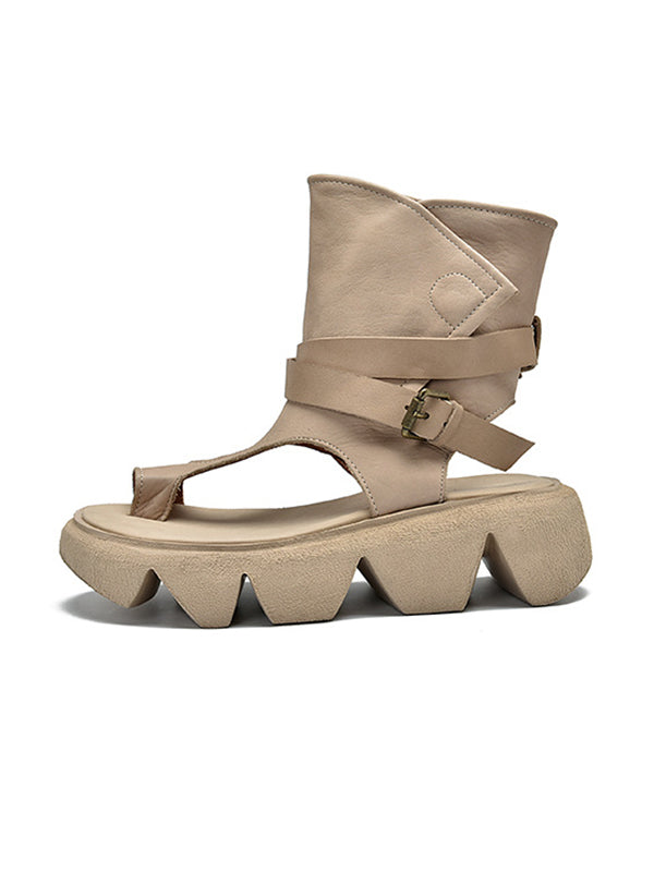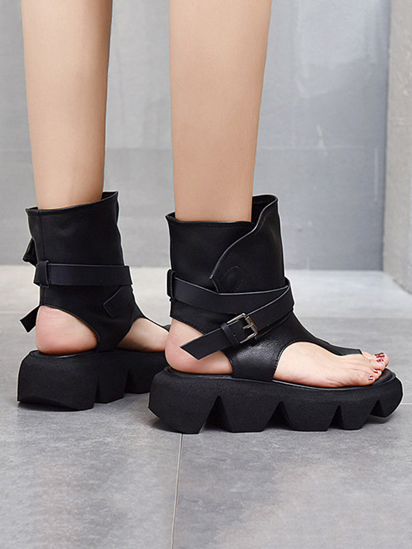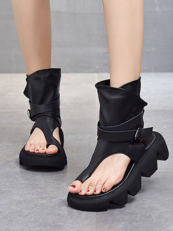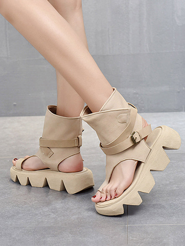 Urban Solid Color Buckle Gladiator Sandals Platform Shoes